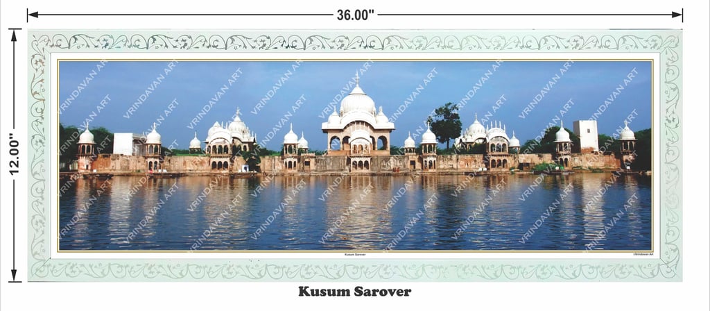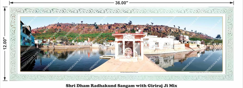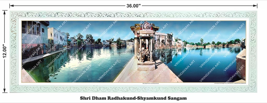VRINDAVAN ART | Shri Dham Radhakund–Shyamkund Sangam Panorama –12x36 Frame (30.48 x 91.44 cm)