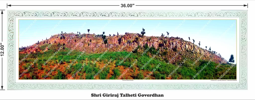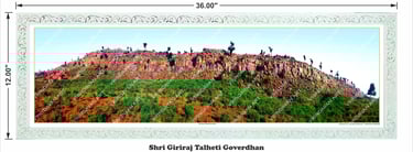 Vrindavan Art | Shri Giriraj Talheti Goverdhan Parvat – Panoramic Sacred Hill Darshan Print | Spiritual Wall Art for Home & Office Decor – White Frame | 12x36 inch (30.48 x 91.44 cm)